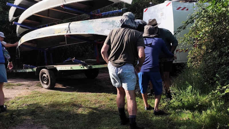 Día 1 El 8 de febrero a las 6.30 am estábamos con Fernando esperando que apareciera Marcel e Inés en su camioneta, en una chacra cerca de Las Piedras donde íbamos a levantar el tráiler con las canoas, los remos y los chalecos, en el intercambio habíamos visto que en Facultad tenían tarrinas azules y yo llevaba todas las que tenía en casa, que con eso nos arreglábamos.