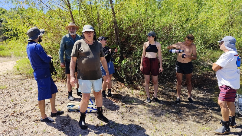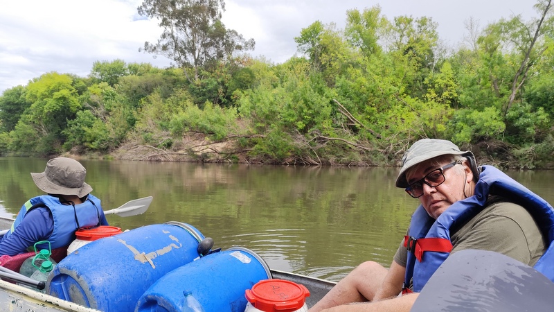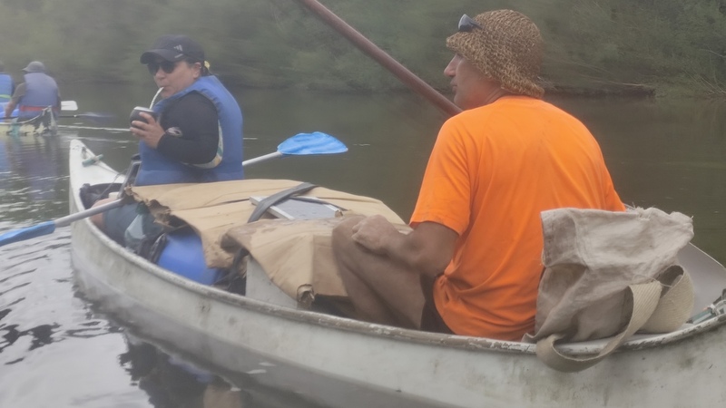 En principio éramos más pero se fueron cayendo algunos académicos y los timoneles quedando al final cuatro canoas, pero nos faltaba un timonel e invitamos a Claudio un baquiano compañero de la Asamblea por el Agua del Río Santa Lucía, que cuando lo invitamos, no dudó en dejar a unos amigos plantados y venirse con nosotros. Había leído muchos relatos de travesías del ACAL, además de conocer a nuestros académicos.