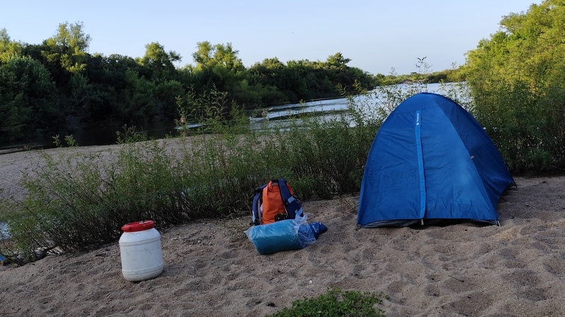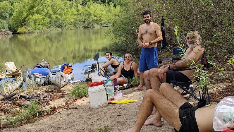 Paramos a almorzar en un campamento de monteadores, en una playa debajo de un gran sauce, teníamos pre pizzas que habíamos dejado prontas la noche anterior, llega un mensaje a mi celular y era Mariana periodista de Brecha que quería hacer un artículo sobre el Santa Lucía, porque le parecía importante volver a poner el foco ahí, dado todo el debate sobre el Proyecto Neptuno, le conté lo que estábamos haciendo y quedó muy entusiasmada para llamar a Marcel el lunes. En realidad, el primer relato de la travesía salió en el Semanario Brecha en un artículo de Mariana Contreras y se llamó: Con Marcel Achkar, director del Instituto de Ecología y Ciencias Ambientales de la Facultad de Ciencias «El Santa Lucía tiene un potencial tremendo». Comenzando así: Días atrás estuvieron recorriendo el río Santa Lucía en canoa, ¿con qué se encontraron? Lo pueden leer en el link: https://brecha.com.uy/el-santa-lucia-tiene-un-potencial-tremendo