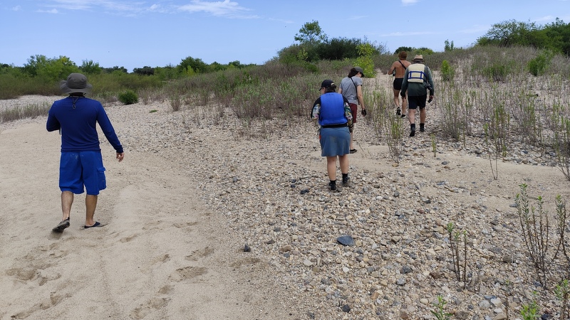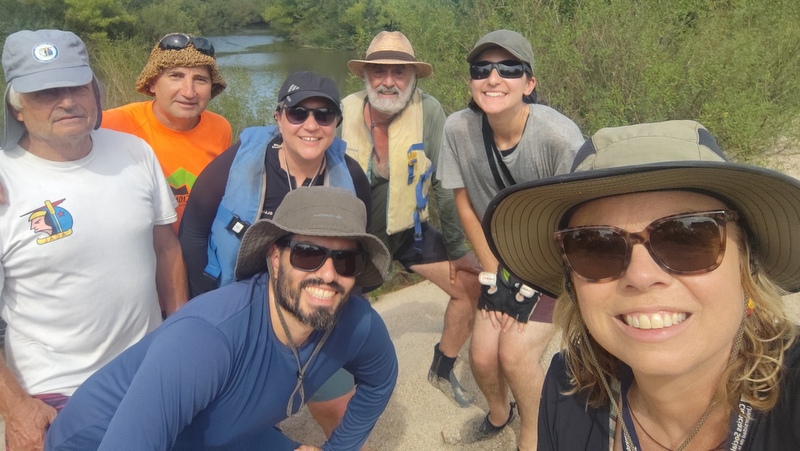 Uno de los puntos importantes que querían relevar y analizar era la desembocadura del Santa Lucía Chico en el Santa Lucía Grande, de donde viene el agua de la Represa de Paso Severino, llegamos ahí para el almuerzo del primer día, estuvimos acampados en la desembocadura recorriendo y subiendo un arenal, además de contemplar en un árbol del otro lado del río una hermosa garza colorada juvenil con largavistas.