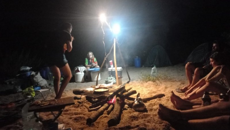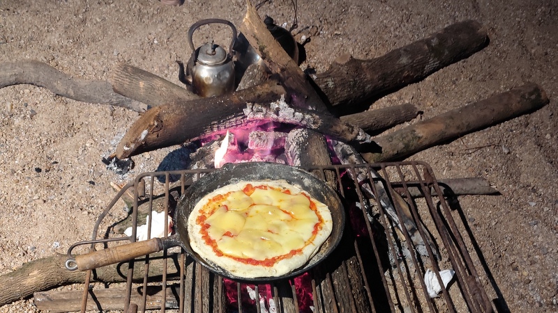 Luego cruzamos para el otro lado y encontramos una playa muy grande y linda donde armamos el campamento y comenzaron a llegar compas de la Asamblea por el Agua, esa noche me tocaba hacer pizzas, en un sartén de hierro del compañero de Lucía especial para las travesías (se lo pedimos para el Cebollatí, y se repitió la magia de pizzas con luna llena).