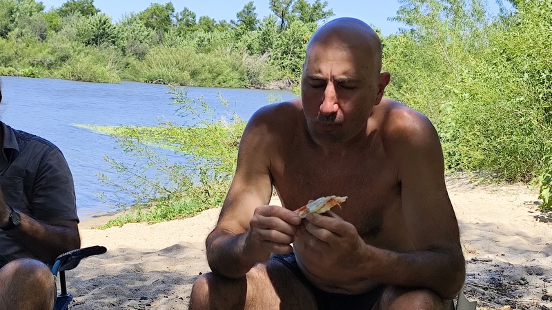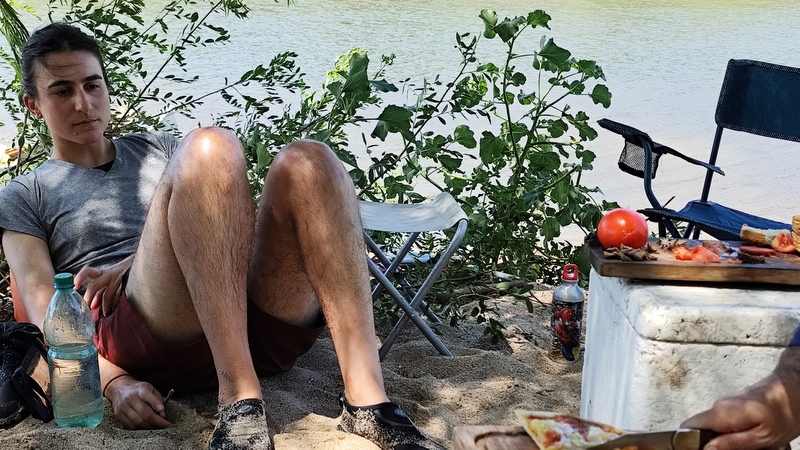 Después de la corredera Claudio dijo que en poco rato llegábamos a dónde podíamos acampar, por tanto, no era necesario parar para almorzar, el problema fue que a partir de ahí todas las playas y todos los campamentos estaban llenos de gente, me asombró la relación con el río, era un río poblado, habitado, disfrutado con familias, niños jugando, gente pescando en cada playita, campamento y parque por el que pasábamos. El hambre empezada a campear, y las ganas de llegar, que no llegaba, en ese último tramo ya no parábamos cada 10 minutos, pasamos 25 de agosto con todo el pueblo en el Parque, pasamos por una playa larga llena de sombrillas, hasta que llegamos a Santa Lucía y paramosss y comimosss.